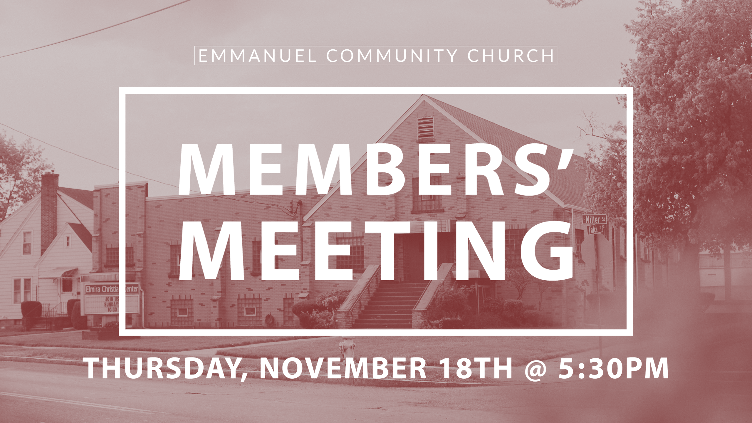 On Thursday, November 18th there will be a Members’ Meeting for the covenant membership of ECC. We will be gathering in our gymnasium at 5:30pm for a fellowship meal and a special celebration of the Lord’s Supper (something we’ve looked forward to for a while now).